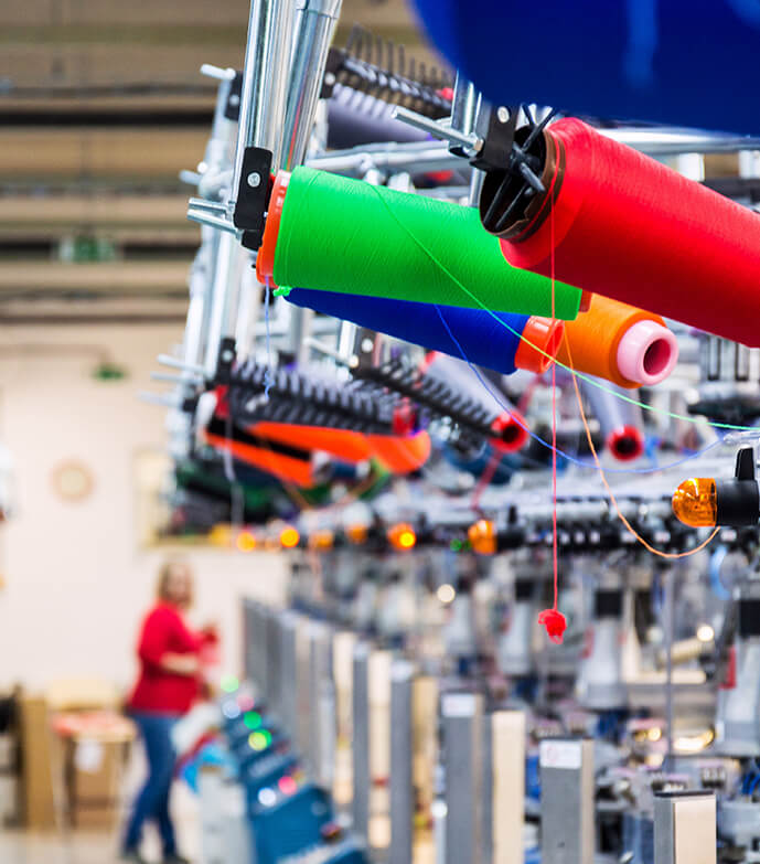 This involves the creation of fabric by interlooping yarn to produce the material used for the garment, often resulting in stretchy and comfortable cloth like jersey. (Note: This is often the first step for knit garments, or replaced by weaving for woven garments.)